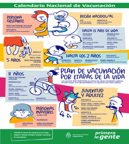 El Calendario Nacional de Vacunación es un plan del gobierno argentino para dar vacunas gratis y obligatorias en centros de salud públicos. Cubre desde el nacimiento hasta la vejez, contra unas 20 enfermedades. Se da por edades para que sea fácil seguirlo. No necesitas receta, solo tu DNI o libreta de vacunación.